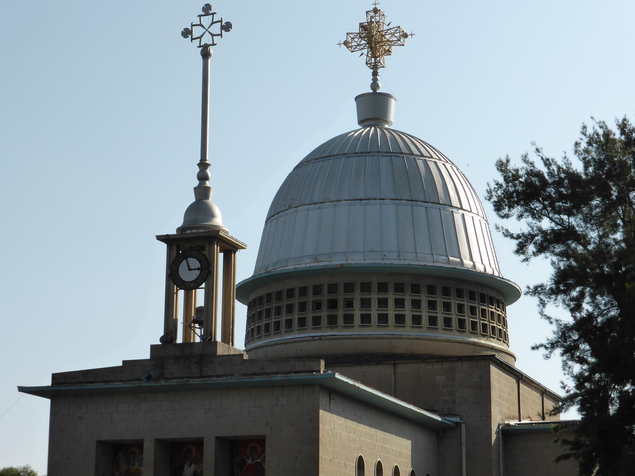 Nach dem mühsamen Aufstieg auf der nördlichen Seite machen wir kurz Rast in Dejen, nicht ohne Moschee und Kirche zu bewundern.