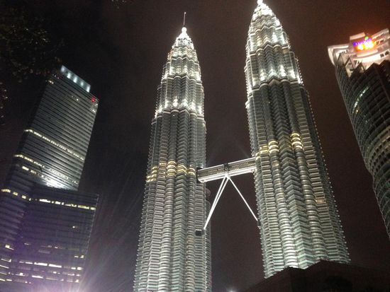 Wir haben am Shoppingcenter Pavillon ein Schild gesehen, auf dem stand das es nur 10 min zu Fuß zu den Twin Towers sind. Den Weg wollte ich checken. Also los. Noch kurz über den Nachtmarkt gelaufen, voll wie immer, ne nicht ich, der Nachtmarkt, dann über die große Kreuzung Richtung Pavillon. Am Pavillon links an den Bars vorbei. Dann begann eine überdachte Fußgängerbrücke die auch erst am Fuße der Towers am Eingang zum Aquarium geendet hat. Dort den Tunnel genommen, der direkt ins Shoppingcenter führt. Und schon stand ich vor den Twin Towers und habe weniger als 10 min gebraucht. Warum haben wir uns eigentlich ne halbe Stunde durch den Verkehr gequält?