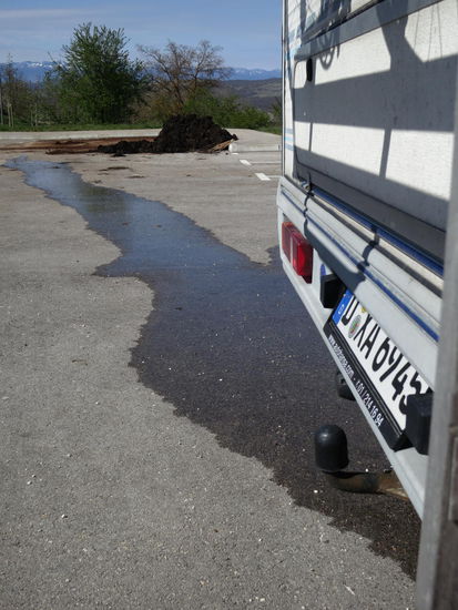 Doch wie sollte es auch anders sein, mit einem österreichischen Oldtimer: Die ökologisch bedenkliche Wasserentsorgung sollte nicht die einzige Malaise Rosis sein und so holte uns die bittere Mechanik-Wahrheit auf dem Weg durch ein unwirtliches Gebirge zwischen der Plitvicer Seenplatte und der Küstenstadt Split ein, wo wir Sarah ein paar Stunden später der kroatischen Luftfahrtbehörde übergeben wollten...