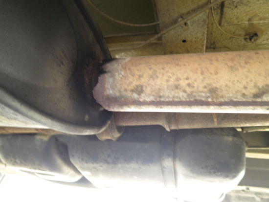 Und selbst solche hoffnungslosen Kfz-Noops wie wir drei erkannten ziemlich schnell das Problem bzw den Grund für das Knattern: Schlicht und ergreifend ist der Auspuff durchgerostet!
