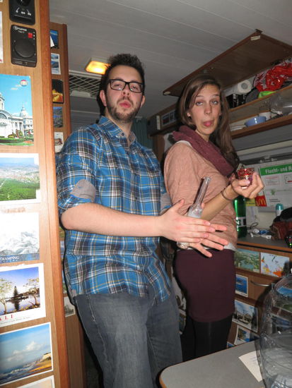 Ein erstes kleines Wehwehchen zeigte dich bei der ausgedehnten dreifachen Dusche am Morgen, da es anscheinend ein Leck im Wasserschlauch gab und das Wasser vom Boden der Duschkabine nicht in den Abwasserbehälter unterm Auto geleitet wurde, sondern einfach rauslief. Hm, is ja nicht so schlimm, haben ja Platz und kein besonders schlechtes Öko-Gewissen, was uns daran hindern würde, das Brackwasser einfach auf die Straße laufen zu lassen. Solang die Dusche funzt und wenigstens die Kloreste ordentlich in den dafür vorgesehenen Behälter mit der entsprechenden zersetzenden blauen Flüssigkeit platschen und der Wassertank an sich kein Leck hat, is ja alles gut und die Fahrt kann losgehen. Mussten allerdings unserem "Kleinen" hinten im Rückraum eintrichtern, dass er bitte während der Fahrt nicht duschen geht, da sonst die Wasserspur hinter uns auf der Landstraße doch zu verdächtig gewesen wäre, weshalb wir uns vorn unserem Schlafplatz auch nach dem duschen recht zeitig auf die Socken gemacht haben