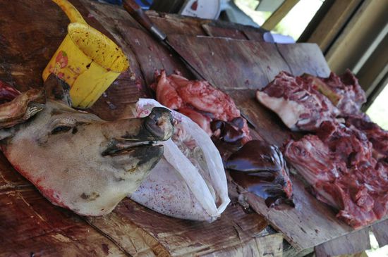 Nach einer kurzen Nacht fahren wir mit Motorbikes zuerst zum Markt, wo es wieder skurrile Sachen zu kaufen gibt.Herrlich, endlich wieder Bike fahren! Wir benutzen natürlich erstmal prompt die falsche Fahrbahnseite, die entgegenkommenden Bikes machen uns freundlich darauf aufmerksam und weichen uns lachend aus. Bei uns hätte man gemeckert und geschimpft.