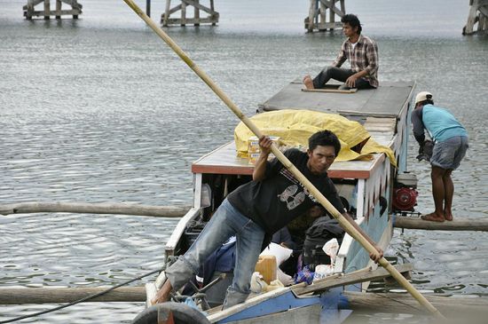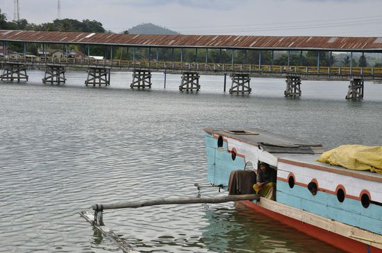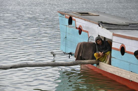 Wir fahren zurück, essen noch Mie und chicken in einem kleinen Warung bei der Brücke die den See vom Fluss trennt und beobachten die Fischer.