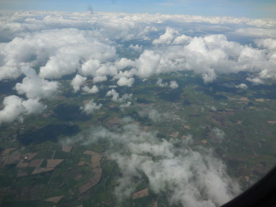 und erster Blick auf die irische Küste. Die Außentemperatur hat während des Fluges für halbwegs erträgliches Klima an Bord gesorgt.