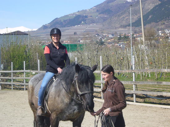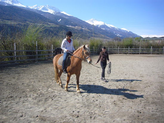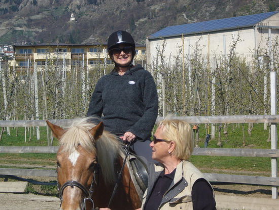 Anschließend gab es für Gitti einen flotten Ausritt mit einer schönen 3-jährigen Haflingerblondine durch die Apfelplantagen.