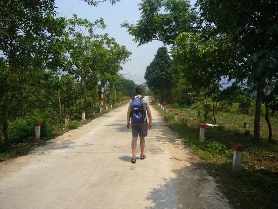 In der Mittagshitze wanderten wir 5 km bis zum Eingang des Nationalparks. Um 13.00 h waren wir endlich am Ziel. Doch der Weg war umsonst! Nicht nur, dass die 19 km lange Fahrt auf den Berg mit dem Rangerauto sehr teuer war, diese wäre sich auch zeitmäßig nicht mehr ausgegangen, da wir ja mit dem Bus wieder zurück nach Hue mussten. Der Bus zurück kostete diesmal die Hälfte, was auch noch zuviel war!