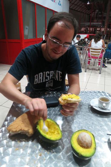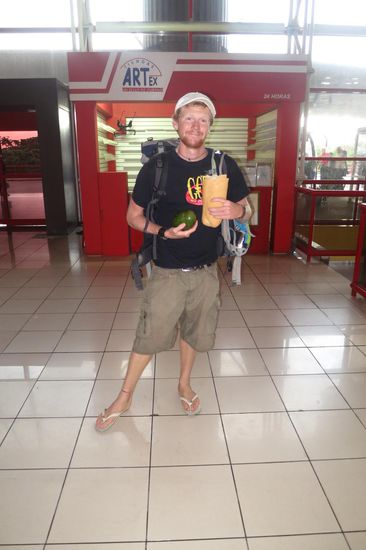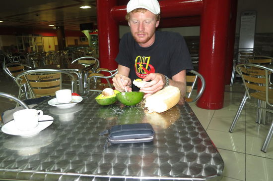 Die restliche Zeit verbrachten wir damit, uns die gelangweilten Souvenir-Shops-Mitarbieter anzuschauen, zu lesen oder im flughafeneigenen Café mit den schon bekannten Resopal-Tischen unsere letzten Pennies auf den Kopf zu hauen. Wir hatten zuvor zwei deutsche Backpacker getroffen, die nicht wussten, was sie mit einem trockenen Brot und einer rieseigen Avocado anfangen sollten am Flughafen bzw. diese Lebensmittel auch gar nicht ins Flugzeug gekriegt hätten und so schenkten sie uns die beiden Sachen, die während des langen Abends meine treuesten Begleiter wurden uns ebenso viel Zeit von der Uhr nahmen wie das Schachspiel