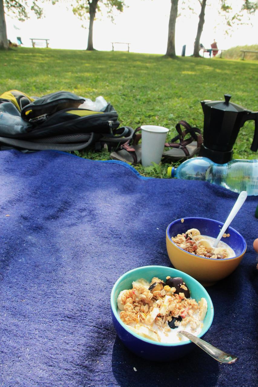 Wir lassen die Hauptstadt hinter uns und fahren am 28.07. zum Balaton. Wir beginnen unsere Umrundung in Zamardi, ein kleiner Ort nahe Siofok, wo wir mit dem Bulli direkt am See stehen. Nach langer Zeit des nicht planschen, stürzen wir uns ins flache Nass. Die Sonne brennt sodass eine Abkühlung (Abkühlung ist zuviel gesagt) nach einer langen Bullifahrt, genau das Richtige ist. Nach dem Frühstück entspannen wir beim lesen, Tagebuch schreiben sowie einer Einheit Yoga