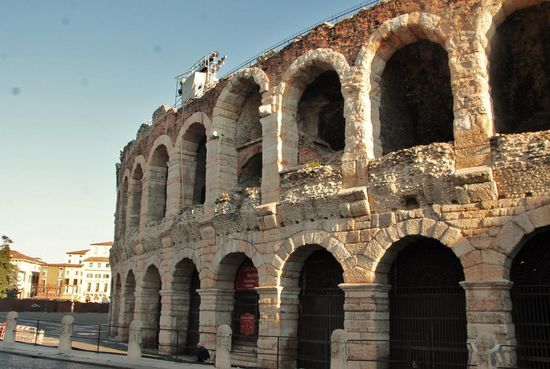Am nächsten Tag gehts früh raus, um das Morgenlicht in den engen Gassen einzufangen. Die Arena zeigt sich beeindruckend auf dem Piazza Bra. Das zweitgrößte erhaltene Amphitheater der Welt, nach dem Kolosseum in Rom. Dort wo vor 2000 Jahren Gladiatoren um ihr Leben schrien, wird die Arena seit 1913 für Opernfestspiele genutzt. Die Akustik ist sicher grandios doch wir bestaunen die noch übrig gebliebenen Steinbögen von außen.