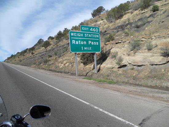 Abfahrt ist um 8 Uhr. Wir folgen dem Santa Fe Trail. Unzählige Pronghorns sind gefährlich nah am Straßenrand. 8.20 Uhr passieren wir die Grenze zu New Mexico, überqueren den Raton Pass, 2.388 m. Über den Pass verläuft die Interstate 25 South von Denver, Colorado, nach Santa Fe, New Mexico. Seit 1960 ist der Pass als National Historic Landmark ausgewiesen. Am Straßenrand steht ein Warnschild: "Fahr weiter so und Du landest im Gefängnis, Hospital oder Friedhof." Leider kann ich das Schild nicht fotografieren.