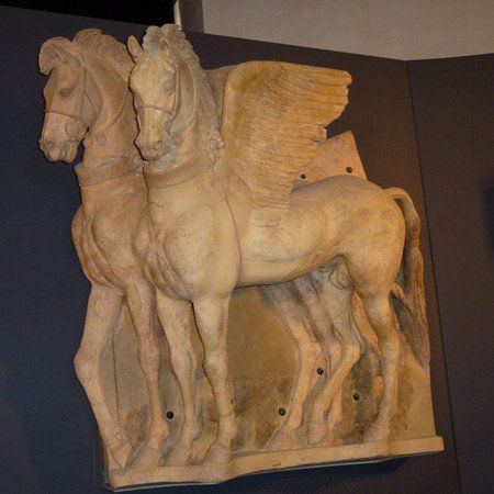 Tarquinia: Archäologisches Museum - Geflügelte Pferde (1,15 m hoch / 1,25 m breit / 4. Jh. v. Chr.)