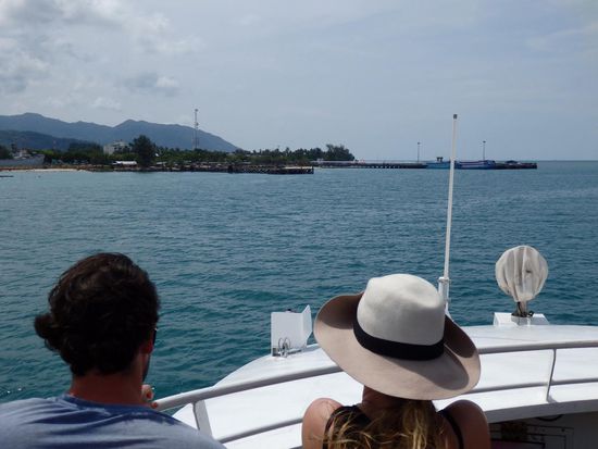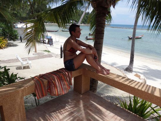 Um 11 Uhr sind wir auf Koh Phangan gelandet und haben uns erstmal von den Schleppern überhaupt nicht beeindrucken lassen, sind am Ende des Piers in eine Kneipe und haben mal was kaltes getrunken. Auf Ko Tao haben wir mit 3 netten Münchner Mädels gesprochen, die uns die Asia Bungalows am Haad Salad empfohlen haben. Wir haben für je 200 Bt ein Sammeltaxi genommen, der Preis war nicht verhandelbar und sind ca. 20 min. mit 2 Kanadierinnen und einem Pärchen aus Oakland gefahren. In der kurzen Zeit, hat eine der Kanadierinnen gesagt, sie sei Krankenschwester, die Mama des Oakländers auch, seine Frau war Hebamme, dann hab ich nur kurz eingeworfen, dass ich Sekretärin in einem Krankenhaus bin. Alle haben gelacht und fanden das ziemlich crazy. Dann waren wir auch schon da und durften aussteigen. Mal sehen, ob wir uns nochmal bei der Fullmoonparty treffen???