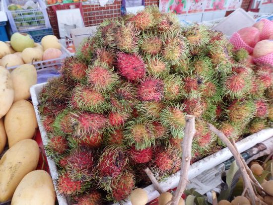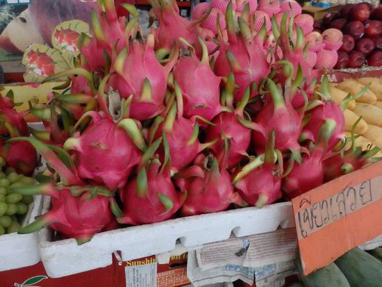 Es gibt bekanntes Gemüse wie Blumenkohl, Brokkoli und Tomaten sowie für uns eher Unbekanntes wie pea eggplants und greenapple eggplants, die im grünen Curry verwendet werden, bitter cucumber, stink Beans und vieles, was wir nicht benennen können.