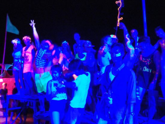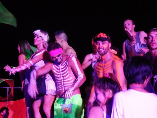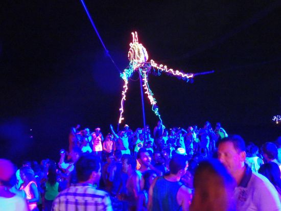 Der absolute Wahnsinn, es kommen Tausende zum Feiern an den Strand, bunt bemalt und in leuchtenden Shirts und Shorts gekleidet. Wer noch nichts passendes für die Party hat, kann hier alles mögliche erwerben. Brillen, Hüte, Blumenketten und vieles mehr, sind zu erschwinglichen Preisen zu haben. Die Meute feiert und tanzt bis in die Morgenstunden....... Der Altersdurchnitt liegt bei etwa 20, wir gehören hier schon zur älteren Generation.