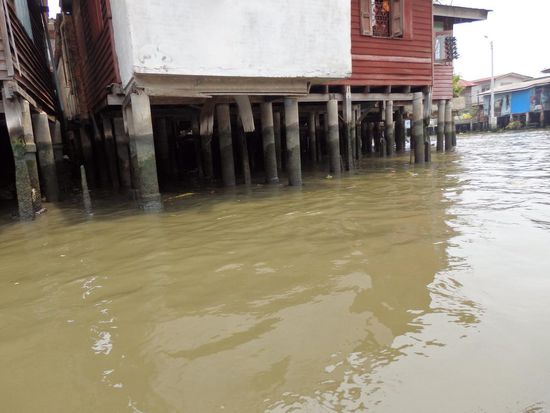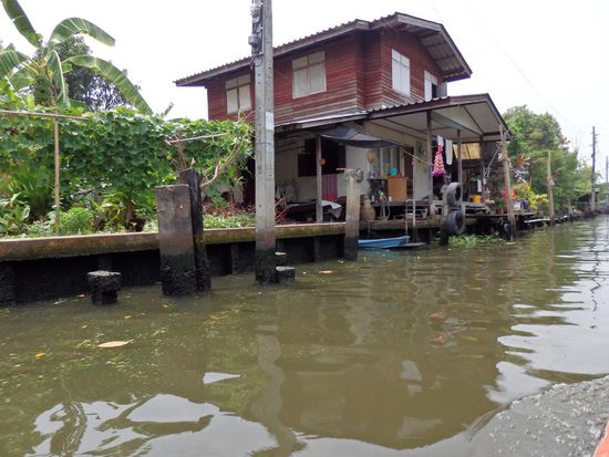 Hier sieht man das alte Bangkok einmal von der Wasserseite aus, tolle gepflegte Häuser neben Hütten, kaum vorstellbar das man dort leben kann.