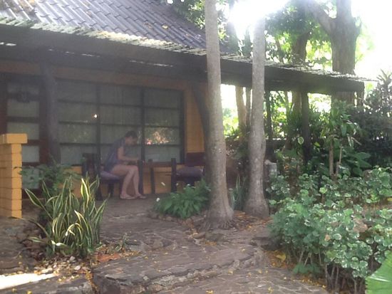 Hier mal ein aktuelles Bild, es ist 10 Uhr, wir haben etwas freie Zeit und sitzen im Home Phutoey vor unserm Bungalow und schreiben an unseren Berichten.