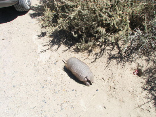Die Tour nach Valdes machen fast nur Gäste vom Hostel, von hier sind es 65 km bis zur Halbinsel, an der Einfahrt ist Eintritt zu bezahlen und es gibt ein Infozentrum, auf dem Weg sehe ich wieder Nandus, dazu Maras und Gürteltiere.