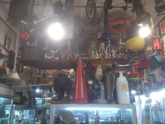 Auf dem Rückweg steige ich an der Grenze zum Nachbarviertel San Telmo aus, in einem Park ist hier ein Wochenendmarkt: verkauft werden v. a. Werkzeug und Kleidung, überwiegend gebraucht - also nicht wirklich interessant. Ich gehe durch San Telmo zur Avenida de Mayo und komme an sehr vielen Antiquitätenläden vorbei, manche richtig groß (in einem dicht bebauten Stadtteil).