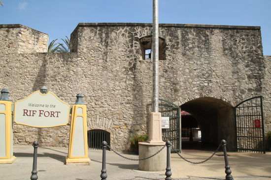 Auf der anderen Seite der Saint Anna Bai, das alte Fort mit modernen Cafes, Restaurants und Geschäften. Hier legen die Kreuzfahrtschiffe an