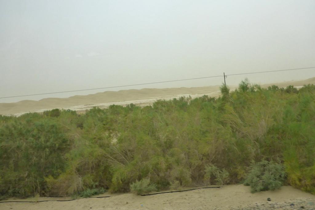 Die Taklamakan ist 1000 km lang und bis zu 400 km breit, nach meinem Reiseführer soll sie die größte Sandwüste der Erde sein, ich habe Zweifel
