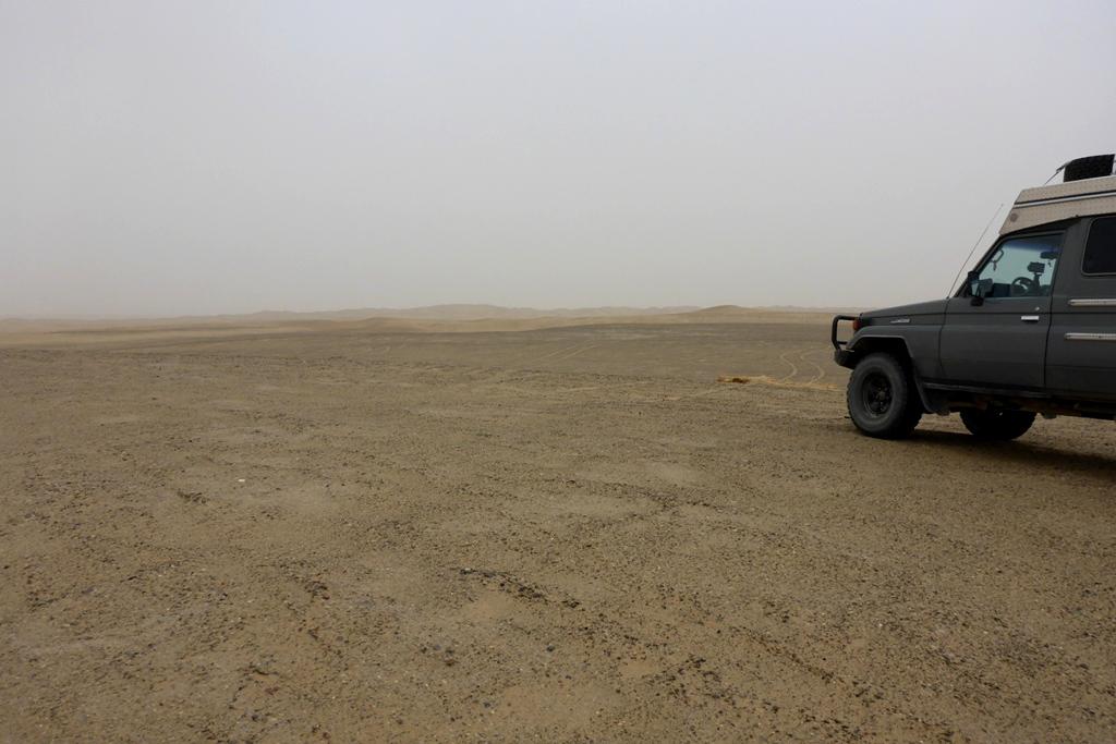 Die Taklamakan ist topfeben, wir bewegen uns ständig auf einer Höhe zwischen 915 und 930 m üNN auf den ersten 150 km