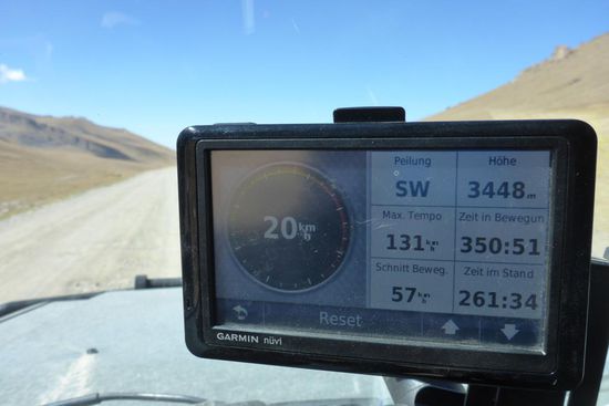 Auf Schotter durch einsame Gebirgslandschaft