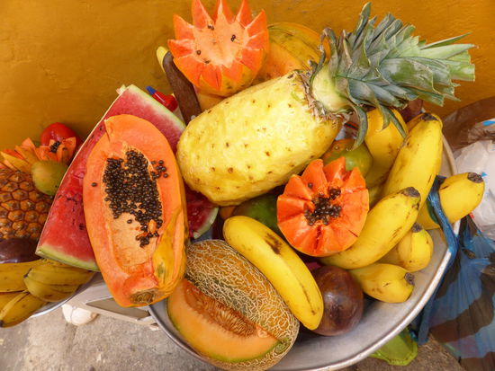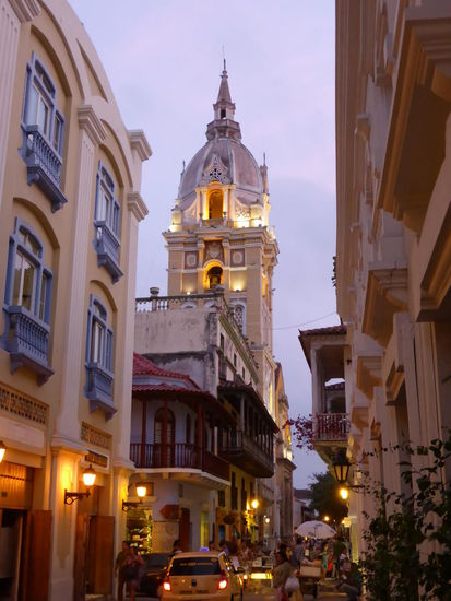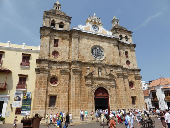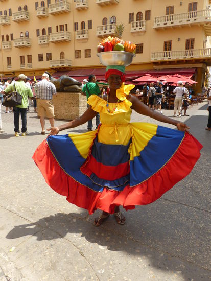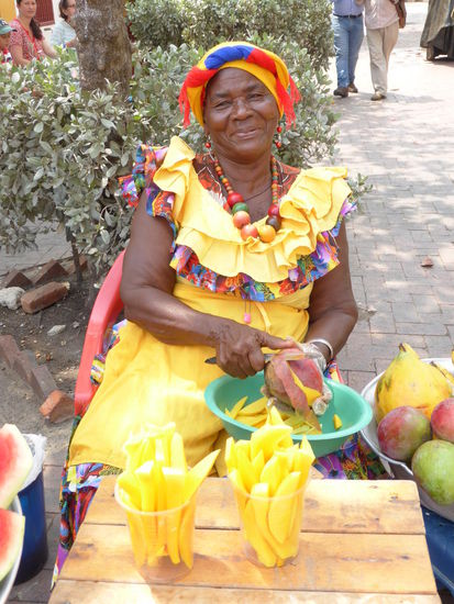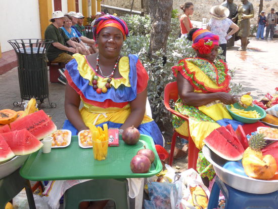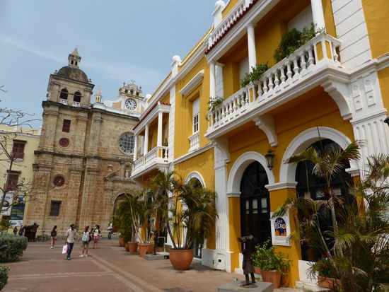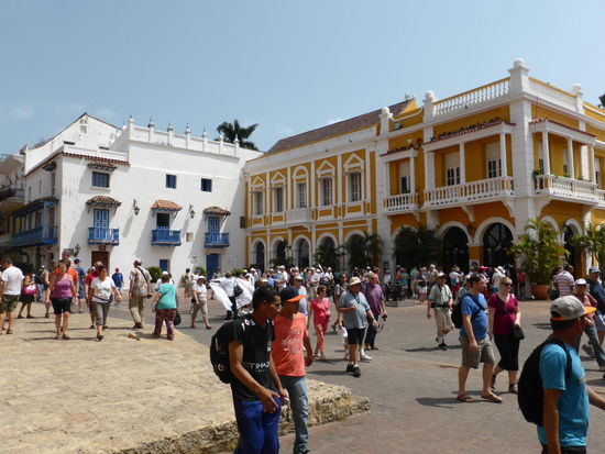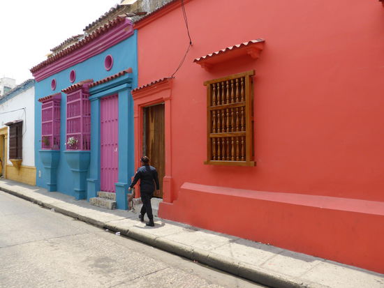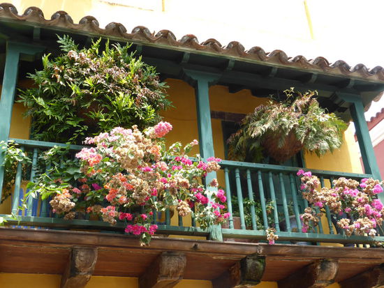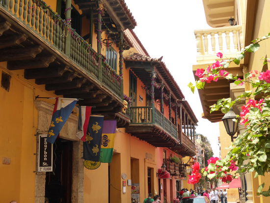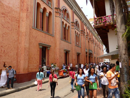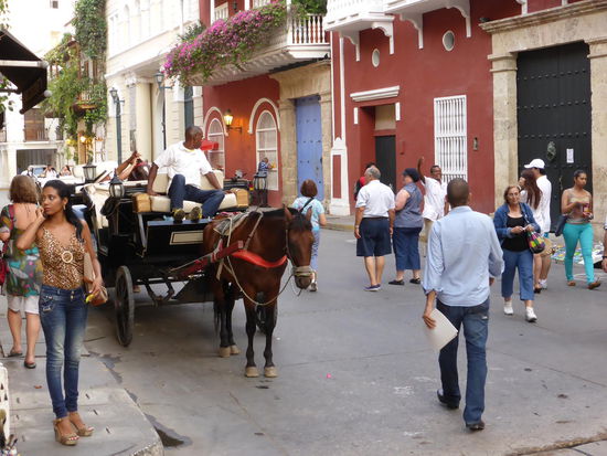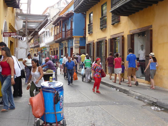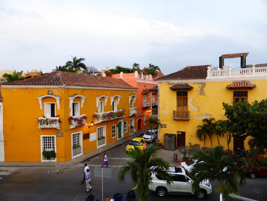 Kann es jemanden geben, dem Cartagena de Indias NICHT gefällt ? Genauer gesagt, die Altstadt von Cartagena, also der fast vollständig von begehbaren Mauern umgebene Bezirk mit den Stadtteilen El Centro und San Diego ? Nein, kann es nicht. Wer erläge nicht dem Reiz und Charme der schön renovierten Häuser aus der Kolonialzeit, oft bunt angestrichen, mit hübschen Balkonen, Erkern, Blumenschmuck, den engen Gassen, den wunderschönen Plazas mit ihren Bäumen, Blumen und den buntgekleideten Obstverkäuferinnen, den restaurierten Kirchen und und und. Man fühlt sich wie in einem Freilichtmuseum, aber einem lebendigen. Schließlich ist das Zentrum ja von Einheimischen bewohnt, es ist belebt, aber nicht hektisch, jeder scheint genügend Zeit zu haben, tätigt in Ruhe seine Einkäufe, plaudert mit Bekannten, gönnt sich einen Kaffee.