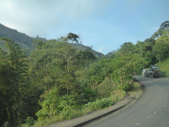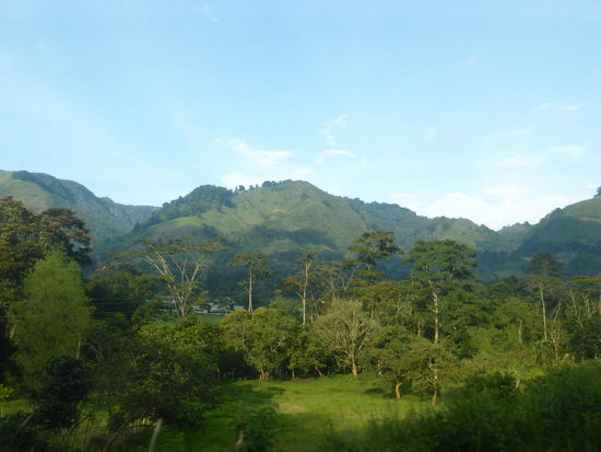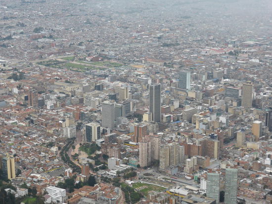 Wie für Medellin habe ich auch für Bogota zwei Tage eingeplant. Dazwischen liegt ein Tag für die Anreise mit dem Bus. Auch wenn es mit dem Flieger zu erschwinglichen Preisen sehr viel schneller geht, ich will etwas mehr vom Land sehen und zwar nicht nur aus der Vogelperspektive. Es lohnt sich. Für 20 Euro bekommt man ziemlich viel Busfahrt geboten, in meinem Fall gut zwölf Stunden. Der Flieger benötigt weniger als eine. Was kein Wunder ist. Kolumbien wird durchzogen von Andenketten, bis auf ein paar Kilometer geradeaus in der Ebene entlang des Rio Magdalena geht es in endlosen Serpentinen hoch und runter. Aufgrund des Fehlens von Eisenbahnen wird der gesamte Warenverkehr über die Straße abgewickelt. Entsprechend quält sich eine endlose Blechkolonne von LKWs die Berge hoch und runter, mit viel Gehupe und abenteuerlichen Überholmanövern dicht am Abgrund.