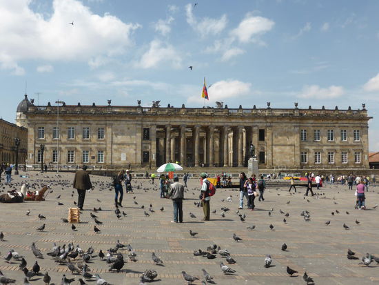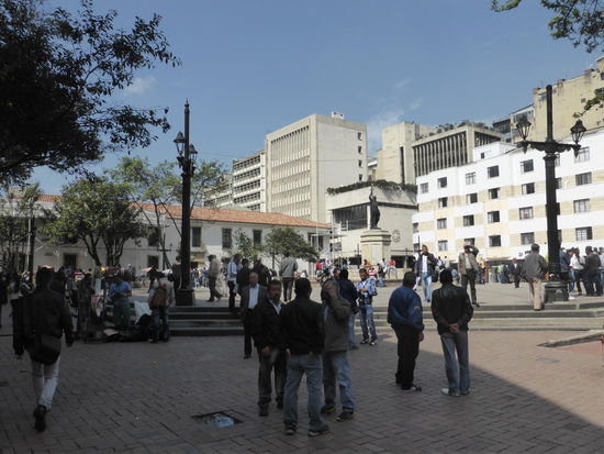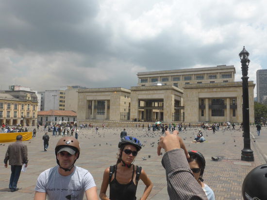 Bei den angebotenen Radtouren stehen weniger die Sehenswürdigkeiten im Mittelpunkt. Mit einer Ausnahme. Der Plaza Bolivar, ein riesiger baumloser Platz, umgeben vom Justizpalast, der Kathedrale, dem Parlamentsgebäude sowie dem Sitz des Bürgermeisters. Mitten drin die Statue Simon Bolivars. Ein wahrhaft geschichtsträchtiger Platz, mit einer zwiespältigen Geschichte, besonders was das Justizgebäude anbetrifft, sehr differenziert dargeboten von unserem Guide Roberto, einem lustigen Typen, und bilingual, für den spanisch und englisch sprechenden Teil unserer zehnköpfigen Gruppe.