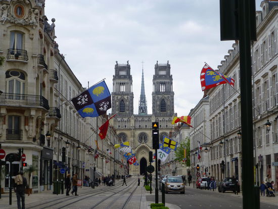 Nachdem wir uns häuslich eingerichtet haben, starten wir zu einer ersten Erkundung von Orléans. Wir fahren mit dem Auto ca. 15 Minuten ins Stadtzentrum und finden auch gleich einen zentralen Parkplatz. In der Stadt laufen die Vorbereitungen zu den Fêtes de Jeanne d'Arc auf Hochtouren, doch wir sind knapp eine Woche zu früh dran. Es ist wohl ein Höhepunkt im Veranstaltungskalender von Orléans und zwei Wochen im Frühling steht die ganze Stadt im Zeichen ihrer Nationalheldin.