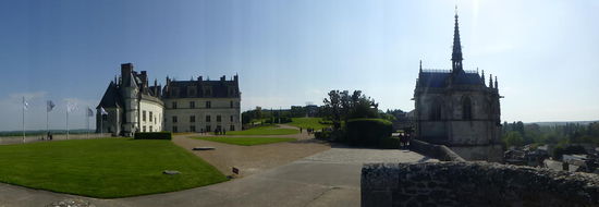 Wir beginnen unsere Schlösser-Tour direkt in Amboise mit dem Château Royal, wo am heutigen Samstag Vormittag noch relativ wenig Andrang herrscht. Das Schloss thront auf einem Felsvorsprung hoch über der Stadt und dem Fluß und es gilt kulturhistorisch als eines der bedeutendsten Loire-Schlösser. War es doch im 14. und 15. Jahrhundert häufig Residenz der Könige von Frankreich. Unter anderem haben Katharina von Medici, Anne de Bretagne, Maria Stuart und König Franz I. ihre Spuren hier hinterlassen. Selbst Ritter und Musketier König Ludwigs XIV. d'Artagnan, machte 1661 Halt im Schloss.