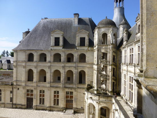 Ein hübsches kleines Anwesen also und unsere erste Tat besteht darin, die berühmte Wendeltreppe von Schloss Chambord zu testen. Die 8 Meter breite Treppe aus zwei ineinander verschränkten Spiralen wird einer Konstruktion Leonardo da Vincis zugeschrieben. Wem auch sonst. Auf der Treppe können zwei Personen gleichzeitig auf- und abschreiten ohne sich zu begegnen. Es funktioniert tatsächlich. Nur sollte man sich vorher einigen, in welchem Stockwerk man sich später trifft
