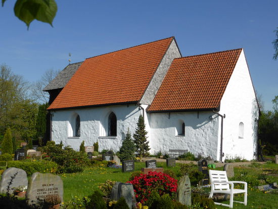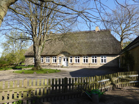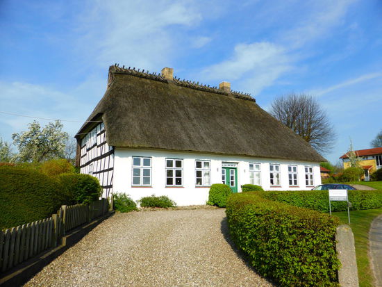 Das Pfarrhaus neben der Kirche hat einen regionaltypischen Grundriss und ist (natürlich) reedgedeckt.