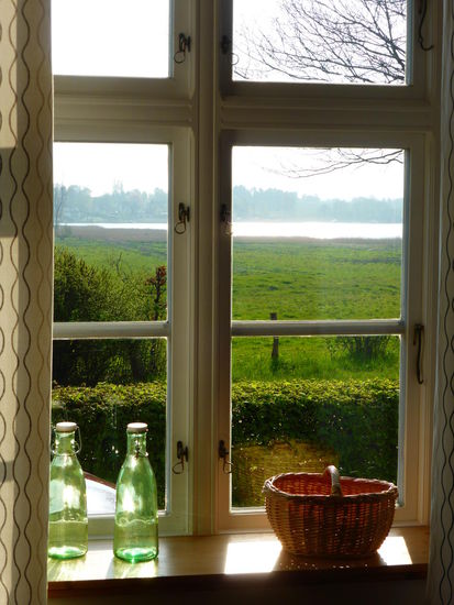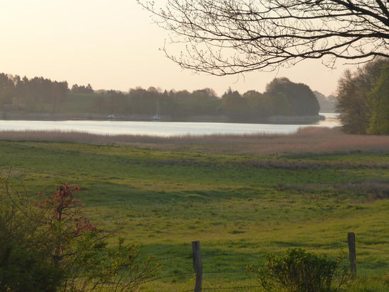 Von unserer Wohnung aus haben wir einen herrlichen Panoramablick über Wiesen und Felder auf das Brodersbyer Noor, einem Teil der Schlei.