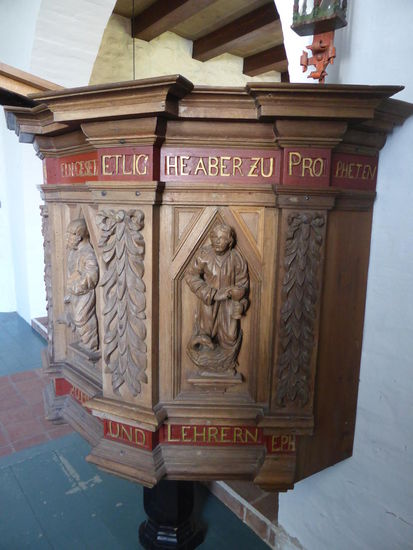 Interessant ist die Höhlung in der Südwand neben der Kanzel: Sie deutet auf eine ursprüngliche Öffnung hin. Pestkranken oder mit Kirchenstrafen belegten Gemeindegliedern wurde so die - wenn auch eingeschränkte - Teilnahme am Gottesdienst ermöglicht.