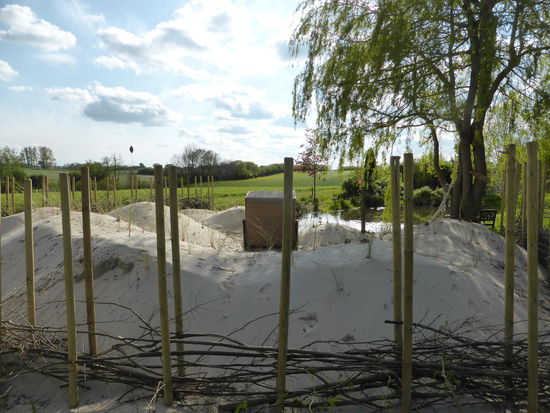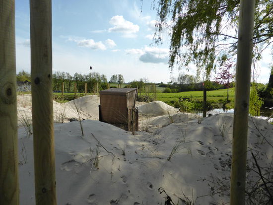Eine 'witzige' Angelegenheit beiet sich gegenüber: hier hat der Grundstückeigner wohl Sehnsucht nach Dünen gehabt und mit einigen Wagenladungen Sand einen Strand simuliert.