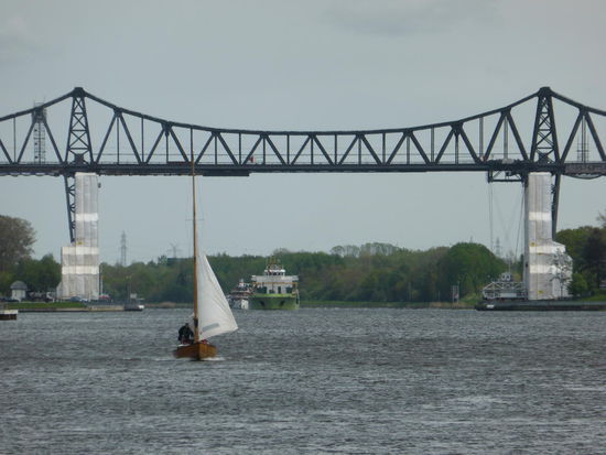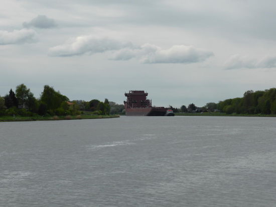 Wir wollten aber auf jeden Fall mal an den Nord-Ostsee-Kanal - wir kommen gerade noch rechtzeitig, um einen großen 'Pott' zu bewundern.