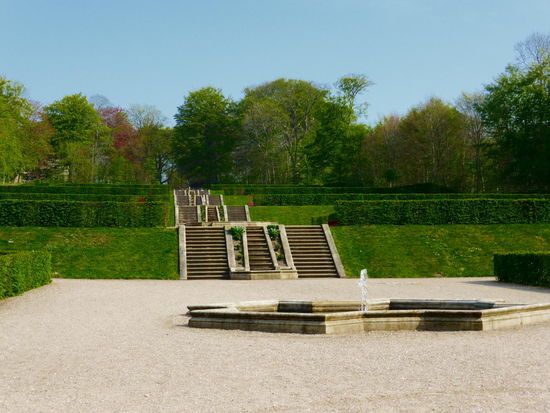 Geht man zwischen Wasserkaskade und Herkulesteich die lindenbestandene Königsallee ein Stück hoch, so gelangt zum Eingang des Terrassengartens.