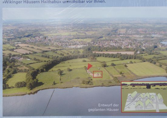Nach dem Besuch der Ausstellung empfiehlt sich der Spaziergang zum rekonstruierten Wikingerdorf. "Durch den Aufbau von insgesamt sieben Gebäuden und einer Landebrücke zum Haddebyer Noor soll die Lebenswelt der Menschen in dieser frühstädtischen Siedlung begreifbar gemacht werden. Sie unterschied sich von derjenigen der ländlichen Siedlungen nicht nur durch ihre Größe und die Dichte der Bebauung, sondern vor allem durch die Dominanz von handwerklicher Produktion und Warenaustausch. Diese lassen sich im archäologischen Befund einerseits durch das Fehlen größere Stallbereiche in den Häusern, andererseits durch Werkstattabfälle und Objekte aus fernen Ländern gut nachweisen."
