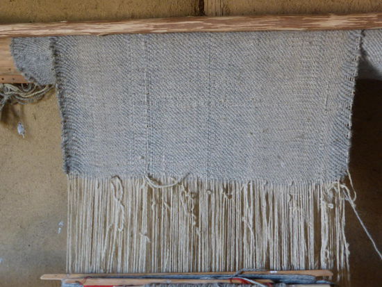 Wollte man im Haus weben, musste der senkrechte Webstuhl so stehen, dass bei geöffneter Tür der Arbeitsplatz erhellt wurde.