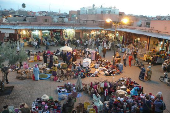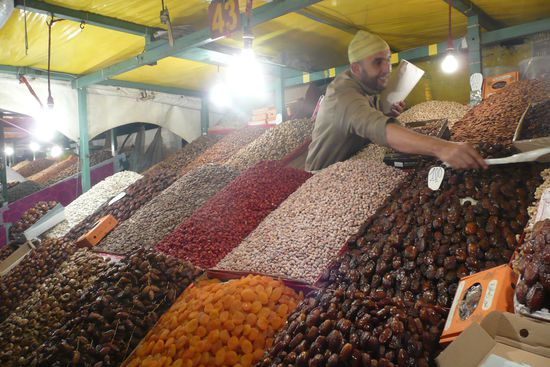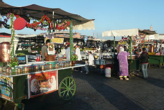 Per Bus wurde die Strecke zurück nach Marrakesch in Angriff genommen und nach 10 Stunden abwechslungsreicher Busfahrt erreichte ich auch wieder mein Riad Centrale in Marrakesch. Der letzte Abend wurde wie der erste am lebhaften Djemma el Fna und in den Souks verbracht.