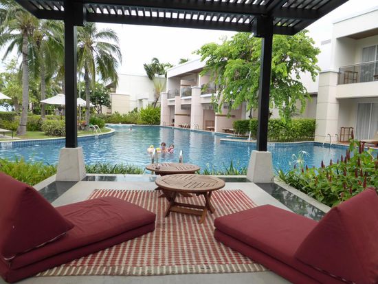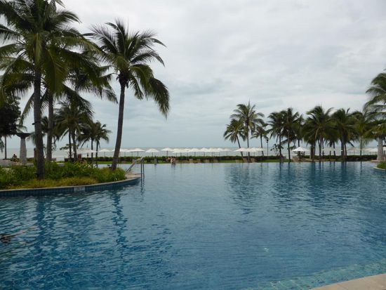 Der Strand hier ist das einzige Manko. Verwöhnt von den Traumstränden auf Koh Samui kann man hier nur müde lächeln. Der Drang hier ins Meer zu springen liegt für uns bei 0,00. Hua Hin ist kein so schöner Ort um Strandurlaub zu verbringen. Das Meer ist nicht so klar... Das Hotel reisst es aber mit der tollen riesigen Poollandschaft absolut raus. Sogar Sand für die Kleinen ist hier rund um den Kinderpool (es gibt sogar drei Kinderpools).