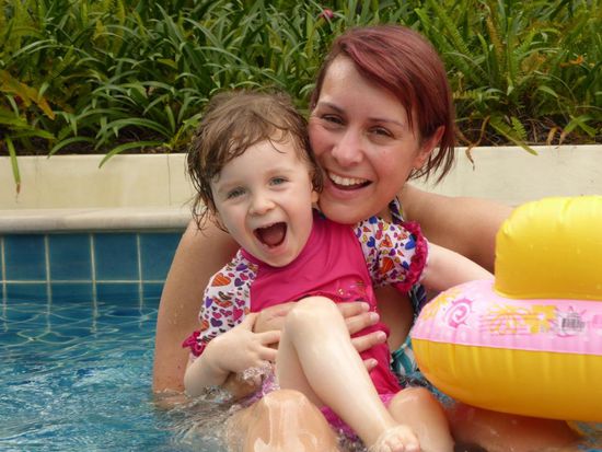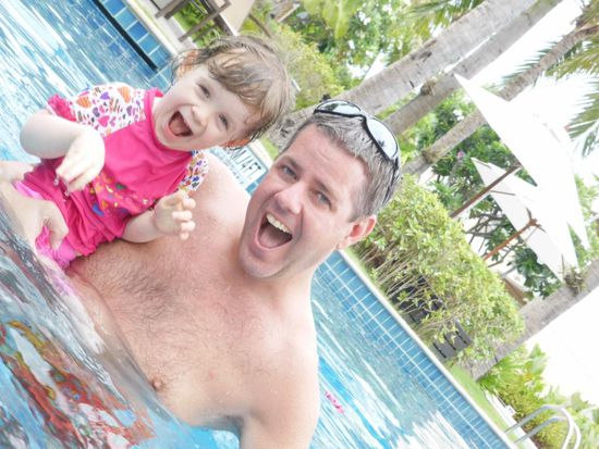 Nach gut 1,5 Stunden Pool ist unser kleiner Mönch überfällig für den Mittagsschlaf. Völlig kaputt und glücklich