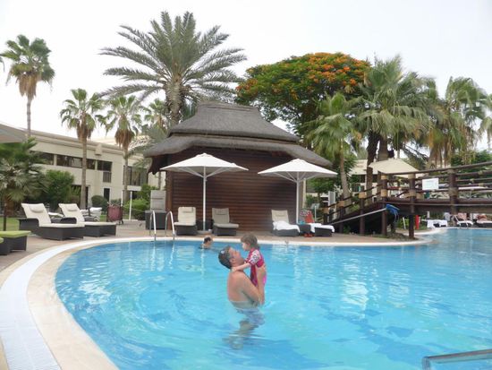 Wir haben den Tag abschließend mit einem Brunch im Dubliner's verbracht. Irische Bar (Restaurant), sehr leger. Essen war spitze. Sascha bekam sogar noch ein Bier extra, was er gar nicht bestellt hatte (und sich daraufhin auch nicht meldete). Danach war Pool angesagt, denn außerhalb des Pooles war es bei 41 Grad im Schatten auch nicht auszuhalten.