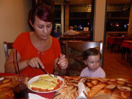 Bis wir drei uns jetzt erstmal an die Temperaturen gewöhnt und die Zeitumstellung verarbeitet haben, ist das die beste Wahl. Wir wollen in der 1. Woche nicht an irgendwelche Frühstückszeiten vom Hotel gebunden sein. Elisa hat ihr eigenes Zimmer in dem sie schläft und Sascha und ich können uns während ihrer Schlafenszeit "frei bewegen".