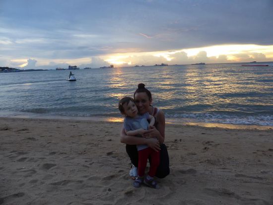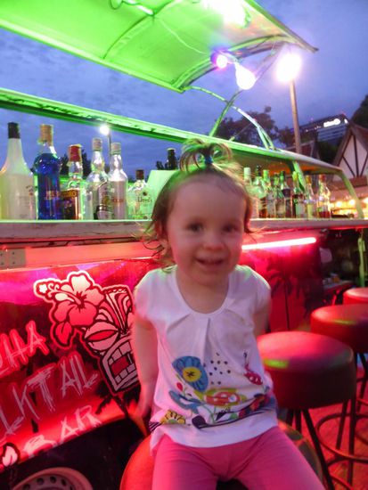 Abends waren wir noch kurz am Strand an der Beach Road. Elisa stellte fest, dass es nach dem Abendessen noch ein Nachtisch geben muss. Wortlaut Elisa: "Und jetzt gibt's Nachtisch"...gesagt, getan. Am Ständchen von einem netten Verkäufer aus Myanmar haben wir uns wieder die berühmten und heißgeliebten Banana-Pancakes gekauft. Danach noch ein kurzer Stopp für einen Pina Colada an der Straße, an einem zu einer Bar umgebauten VW Bully, dann aber ab ins Ferienhaus...