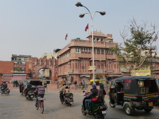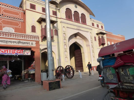 Eines von ca. 1 Dutzend Stadttoren die entlang der ehemaligen Stadtmauer entstanden sind und heute immer noch die Altstadt von Jaipur mit prägen.