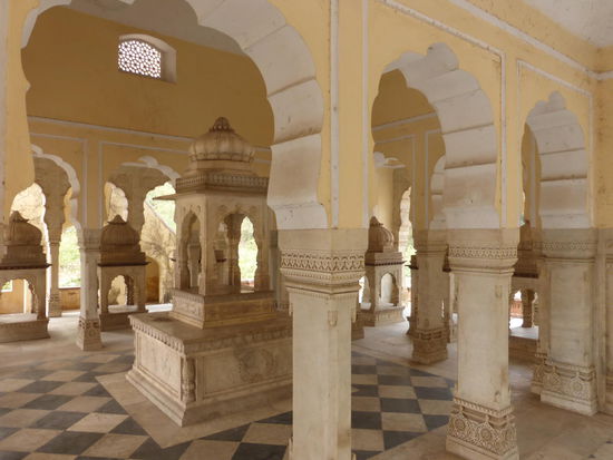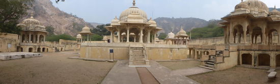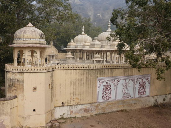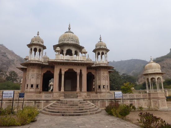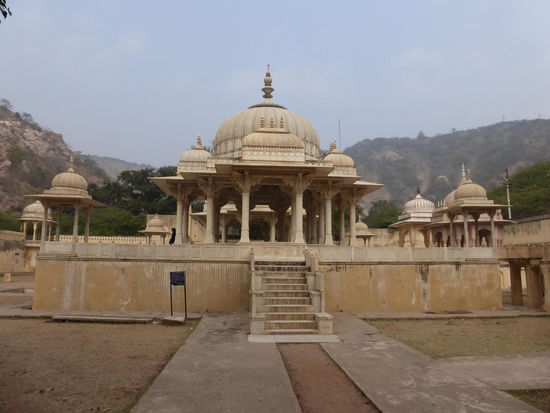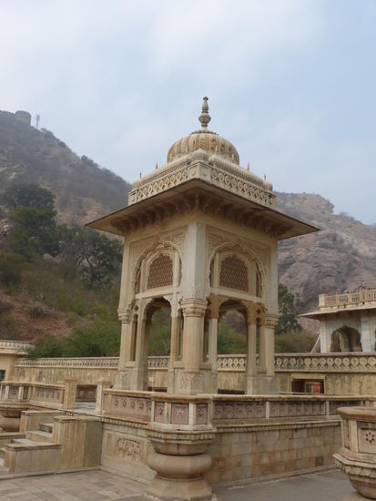 Von einem Ende der Stadt an der Albert Hall geht es zum anderen Ende um die Grabstätten von Gaitor zu besuchen. Sie liegen etwas abseits und sind " noch " nicht ganz so stark von Touristen belagert wie andere Orte in und um Jaipur. Die Kunstvoll angelegten Bauwerke aus Marmor liegen in einer Gartenlandschaft auf einen Hügel die seit Anfang des 18. Jh. auch als Verbrennungsstätte für die Mitglieder der herrschenden Königsfamilie genutzt wurde.