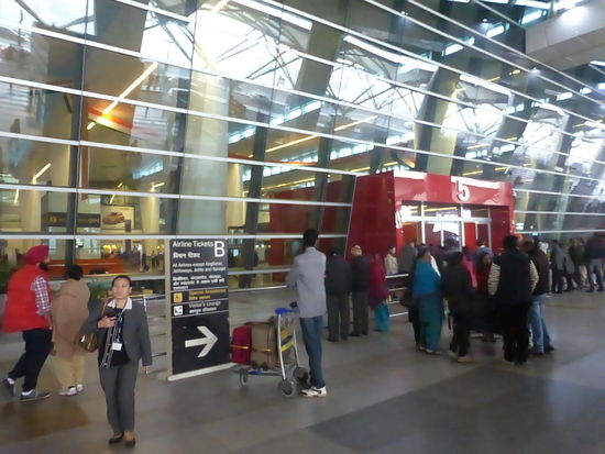 Nach ca. 9 Stunden Flugzeit landete ich pünktlich am späten Vormittag im dichten Nebel auf dem Indira Gandi International Airport in Delhi. Der Airport ist seit einiger Zeit mit ca. 30 Millionen Fluggästen im Jahr der größte in Indien hauchdünn vor dem bisherigen Spitzenreiter in Mumbai. Neben Air India nutzen auch weitere indische Fluggesellschaften Delhi als Drehkreuz wie z.b. IndiGo , SpiceJet , JetLite oder Jet Airways. Seit 2010 ist der Airport auch an das Netz der Metro Delhi angeschlossen so das man ohne größere Probleme ins Stadtzentrum gelangen kann. Nach ca. 30 Minuten warten an der Passkontrolle ging es ohne größere Probleme zum Ausgang Richtung City .