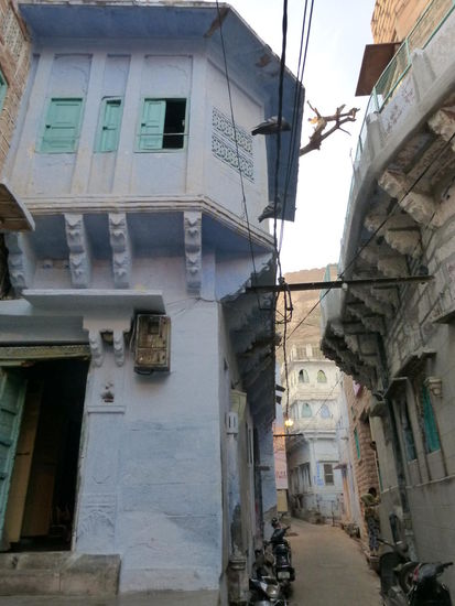 Nach der Pink City folgt die Blue City wo ich heute mittag gut angekommen bin und mein Hotel bezogen habe. Jodhpur ist mit rund einer Million Einwohner nach Jaipur die zweitgrößte Stadt in Rajasthan und wurde 1459 von Rao Jodha als neue Hauptstadt der bedeutenden Fürstenfamilie der Rathor gegründet weil diese sich im nur wenige Kilometer entfernten Mandore auf Grund der aus Delhi anrückenden islamischen Eroberern nicht mehr sicher fühlten. Ich machte mich am Nachmittag gleich auf um mich ins Gewimmel der engen Gassen in der Altstadt zu stürzen und merkte sofort das Jodhpur bei weiten nicht so stark von Touristen besucht wird wie das in Jaipur noch der Fall war und wie ich es einige Tage später auch noch in Udaipur erleben durfte . Hier konnte man noch etwas deutlicher das indische Leben in Rajasthan spüren als anderswo. Ich wurde hier auch wieder öfter besonders von Kindern angesprochen mit der Bitte ein Foto von ihnen zu machen.